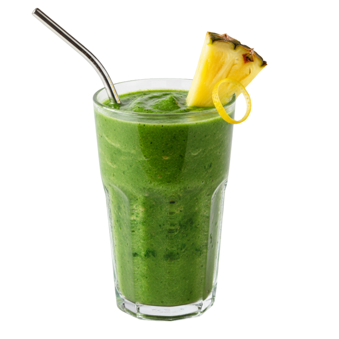 Una mezcla detoxificante y deliciosa de espinacas, plátano, piña y un toque de jengibre para empezar el día con la máxima energía.